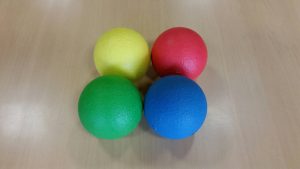 転がったボールは、さっき体操で使用した筋トレ用のスポンジボール……何かの弾みでバッグからこぼれてしまったのか?